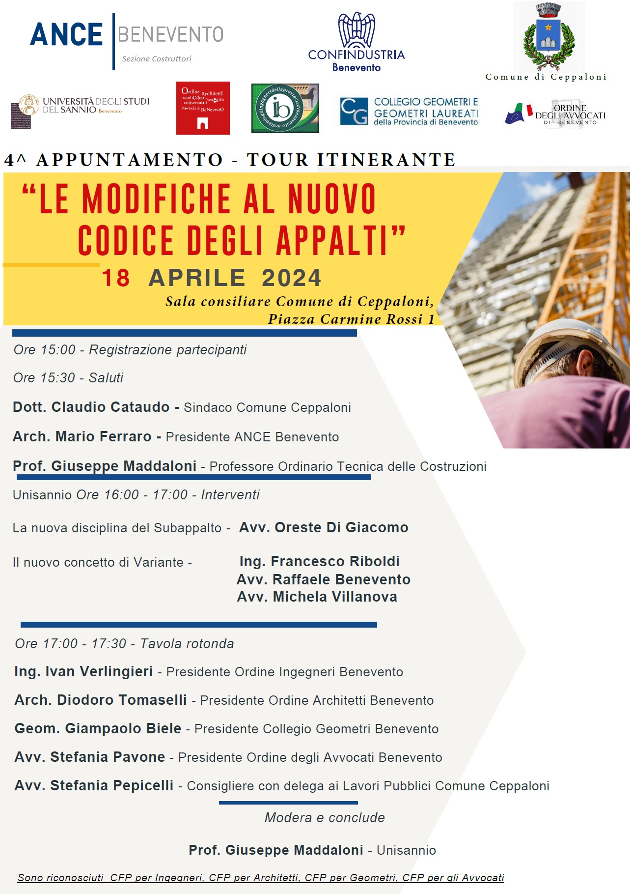 ANCE BENEVENTO. SEMINARIO SUL CODICE DEGLI APPALTI – 18 APRILE
